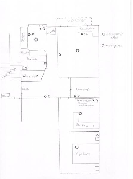 По каким стенам лучше производить горизонтальное штробление для укладки электропроводки в гофре. (Если можно пометить на рисунке).