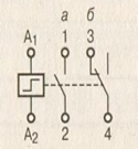 На реле должно быть обозначение контактов. Из рисунка, думаю, понятно, что есть что. Алгоритм работы такой: а/б/а/б. То есть при первой кратковременной подаче напряжения сработает группа контактов а (т.е. 1 и 2). При второй подаче - группа б (т.е. 3 и 4) и так по кругу. Для управления используется кнопка с нормально открытыми контактами, то есть по типу кнопки для звонка.