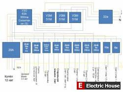 трубе проводом ВВГ нг 4 на 2.5 мм. В дом заходит 3 фазы и ноль. Электрики предложили собрать вот такой щит для дома.