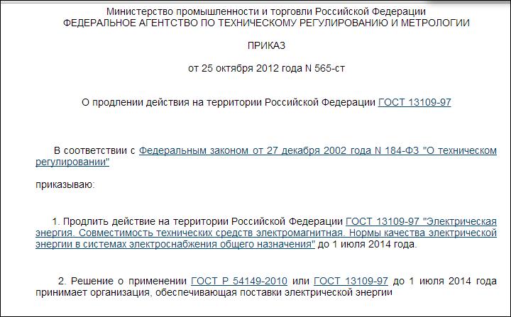 ГОСТ 13109-97 Электрическая энергия. Совместимость технических средств электромагнитная. Нормы качества электрической энергии в системах электроснабжения общего назначения.