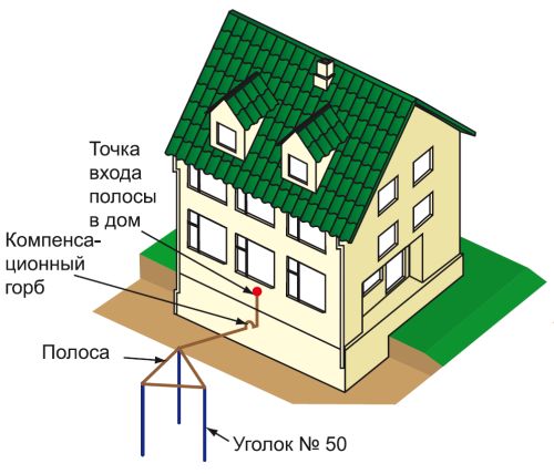 Заземлитель и соединение его с ГЗШ в здании