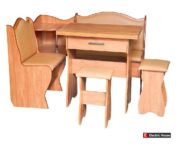 Ящики имеются под каждым сиденьем, плюс выдвижной ящик в столе. Цена комплекта 6500 рублей.