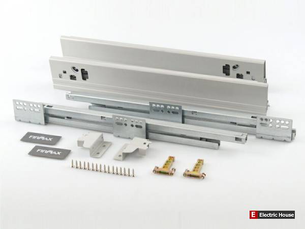 Firmax Alpha: направляющие скрытого монтажа со встроенным доводчиком, динамическая нагрузка - 40 кг. Шестеренчатый механизм синхронизации. Полное выдвижение, плавный ход, простая сборка и быстрый монтаж.