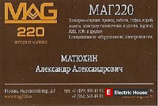 Компания ООО "МАГ220" основана в 2012 году в городе Москве. Основным видом деятельности компании является оптовая и розничная торговля кабелем, проводом и другим электрооборудованием. Задачи, которые ставят перед собой руководители ООО "МАГ220" это: