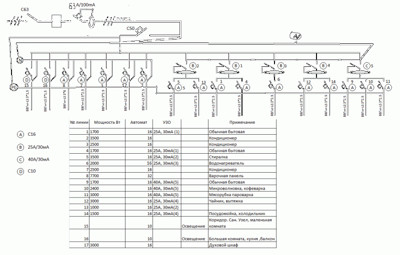 Уважаемые опытные форумчане, прошу Вас покритиковать 1-фазную схему электрооборудования двухкомнатной квартиры (новостойка).