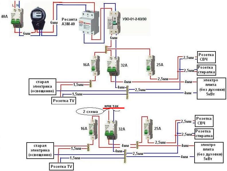 Изначально так и думал..., сейчас после счетчика только 16А..., а недавно сгорел хол-к, приходил мастер: "он электронный говорит, надо было предохраняться, ставить реле напряжения на входе...". Поэтому задумался..., и решил старую разводку и новую замкнуть на Ресанту (стиралка тоже будет электронная) и УЗО... далее ни как не соображу - старую разводку и новую замыкать на общий для них АВ32А (2-хконт), или старую разводку пустить мимо АВ32А (в этом случае 25А выбрасываю) и оставить на своем АВ16А (1-конт.)