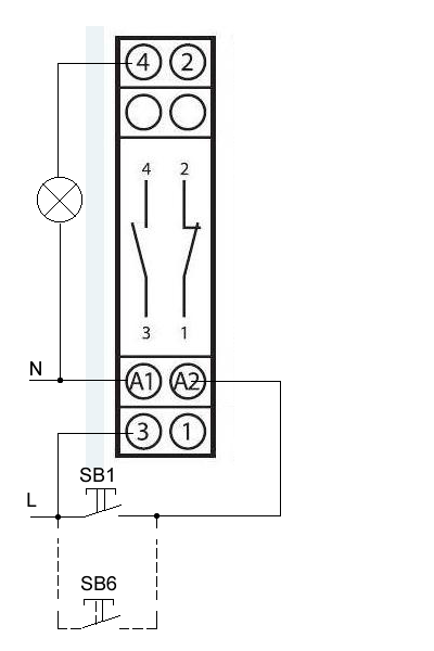 Но вы должны учесть, что при первом нажатии на любую кнопку лампа, как и положено, включится. При втором нажатии на любую кнопку она останется гореть, так как сработают контакты 1 и 2. И только при третьем нажатии сработают снова 3 и 4. При четвертом снова 1 и 2. И так через раз. Поэтому алгорим работы реле и описывается как а/б/а/б, где а - это 3 и 4, а б - это 1 и 2 или наоборот - это неважно. Удобно ли так пользоваться будет, то бишь лишний раз нажимать?