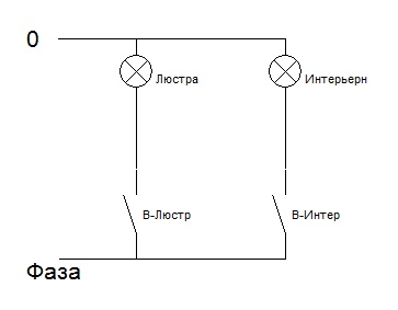 olvol писал(а):когда соединяю 0 от инт. света и от люстры,то оба выключателя работаю только на инт. свет