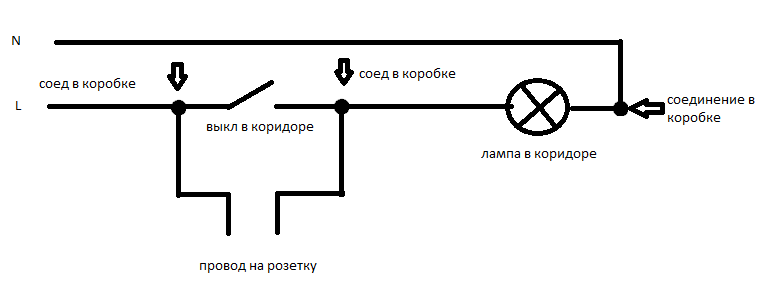 если выкрутить лампочку, розетка не работает. и если включить свет в коридоре, тоже вообще не работает розетка.
