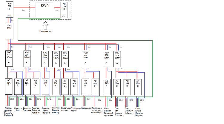 В данный момент делаю электрику у себя в квартире, прошу вас посмотреть схему электро щитка, будет ли работать она или в ней может что исправить? В Электрике не силён, поэтому и прошу вас помочь со схемой