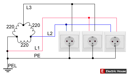 Скорее всего старая система питания: "треугольник" - 220 вольт (ранее такая применялась), и сейчас встречается, только редко