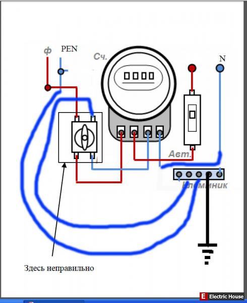 Anatoliy писал(а):Вполне возможно что схема ввода выполнена неправильно, что на вводе PEN проводник посажен сразу на автомат, а не на шину РЕ.