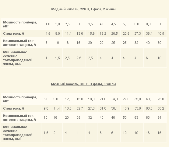 Игареха писал(а):Печь в сауну, 0.4 Квт, расстояние от щитка 30 метров, 11 Кватт, в паспорте прописанно: кабель 5 на 2,5, как выбрать сечение по паспорту или по мощности?