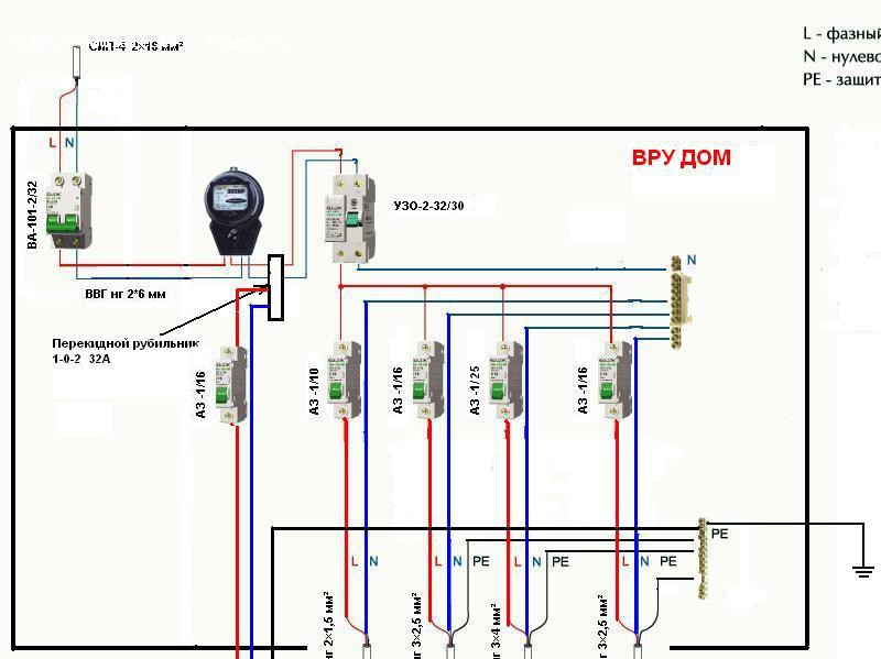 2. По приложенной схеме щитка – правильно ли сделана? Номиналы токов на автоматах и УЗО? А также соединение проводами?