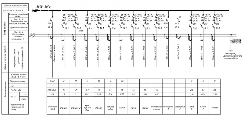 Недостатки схемы я описал в первом сообщении. На счет номиналов автоматов. У вас везде используеться кабель 2,5 мм.кв при этом он защищен автоматами от 6 до 30 А. Нету смысла ставить автомат на 6 А на кабель сечением 2,5 мм кв. Там полностью можно использовать кабель 1,5 мм кв. Только вот самое главное это то, что если у вас на такой линии (защищенной АВ на 6 А) будет и свет и розетки, то что вы сможете включить в эту розетку? Включите фен и будете иметь срабатывание автомата. Вот в этом и преимущество разделения розеток и освещение Максимально что можна поставить на кабель сечением 2,5 мм кв это автомат на 20А (допустимый ток для кабеля 25 А), а у вас 30 А. Кстати где вы нашли такой номинал. Стандартно идет 32 А