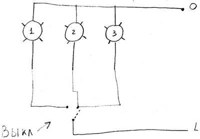 2. Выключатель стоит в нулевом проводнике и протяжённая линия. Отключить все контакты от выключателя. Продолжает моргать?