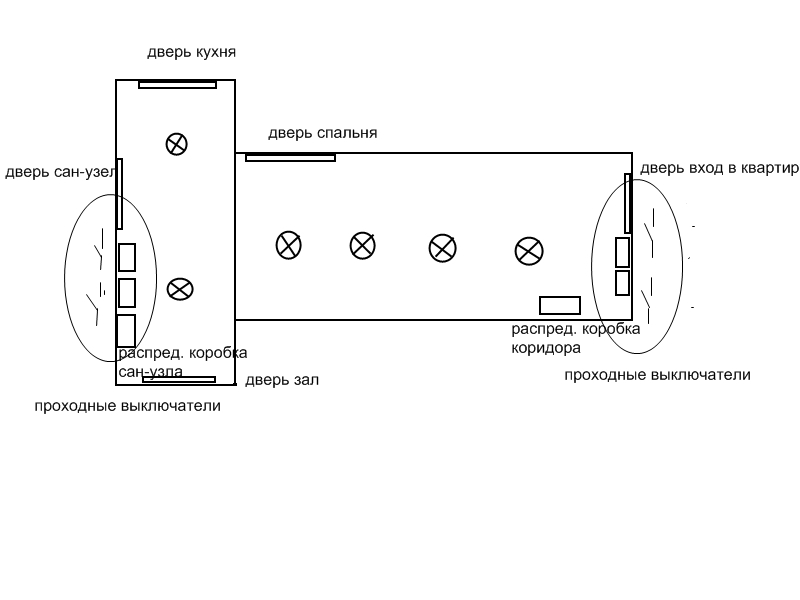 А вот про схему не очень понятен вопрос... о каких переключателях речь, если уже имеется один выключатель.