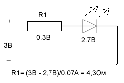 При подключении синего к питанию от 2х батареек АА диод горит ярко, дальше пробую подключить красный в цепь параллельную, красный горит ярко, а синий очень тускло, при подключении заместо красного в цепь синего горит цепочка ярко, даже не смотря на то сколько я синих подключил.