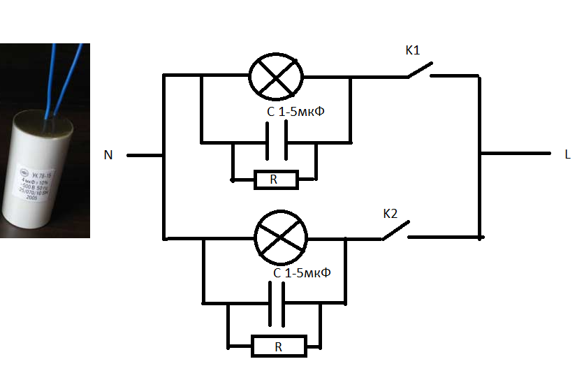 3. Шунтировать лампу, параллельно лампам на входе в люстру поставить сетевой конденсатор, сопротивление.(помогает)