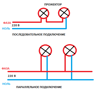 Для этого надо снять прожектор, который не горит. Проверить сначала без зануления, потом на корпус подключить ноль.
