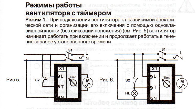 при подключении по этой схеме (рис 5) вентилятор работает без выключений. т.е. из-за подсветки линия "Т" всегда под "мизерным" напряжением и этого хватает чтобы таймер сработал (пробовал подключить к выкл без подсветки - работает как надо)