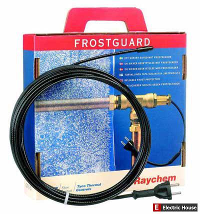 Raychem FrostGuard — саморегулирующийся экранированный нагревательный кабель, разработан для защиты от замерзания трубопроводов, при этом возможна установка как снаружи, так и внутри трубы. Кабель Raychem FrostGuard удобен для труб малого диаметра — небольшие размеры кабеля намного облегчают монтаж. Выделение тепла токопроводящей матрицей кабеля Raychem FrostGuard увеличивается или уменьшается в соответствии с изменением окружающей температуры. Каждый участок по длине кабеля может иметь свою погонную мощность в соответствии с условиями на этом участке трубопровода. Благодаря эффекту саморегуляции витки кабеля могут пересекаться без риска локального перегреваю Эффект саморегуляции способствует экономичному использованию электроэнергии — выделение тепла происходит только там, где это необходимо. Изоляция из термопластичного эластомера обеспечивает прекрасные диэлектрические свойства, а в комбинации с внешней оболочкой отличную защиту кабеля от влаги, а также высокую прочность на сжатие и стойкость к истиранию. Внешняя оболочка выполнена из фторопласта — кабель Raychem FrostGuard допустимо применять для трубопроводов с питьевой водой. Плетеный экран из луженой медной проволоки заземляется и обеспечивает полную электробезопасность.