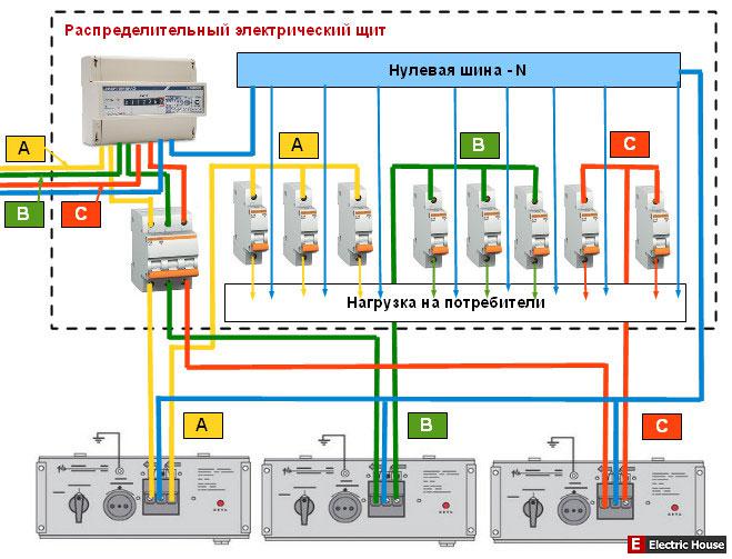 Схема подключения стабилизатора в трехфазной сети