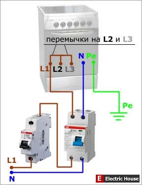 Схема подключения электроплиты через УЗО для одной фазы:
