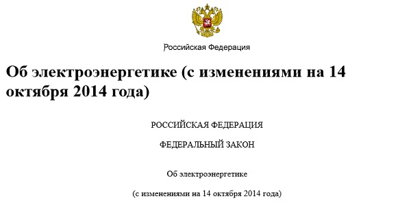 Федеральный закон об электроэнергетике. Р.Ф. Принят Государственной Думой 21 февраля 2003 года. Одобрен Советом Федерации 12 марта 2003 года. с изм., внесенными Федеральным законом от 07.02.2011 N 8-ФЗ)