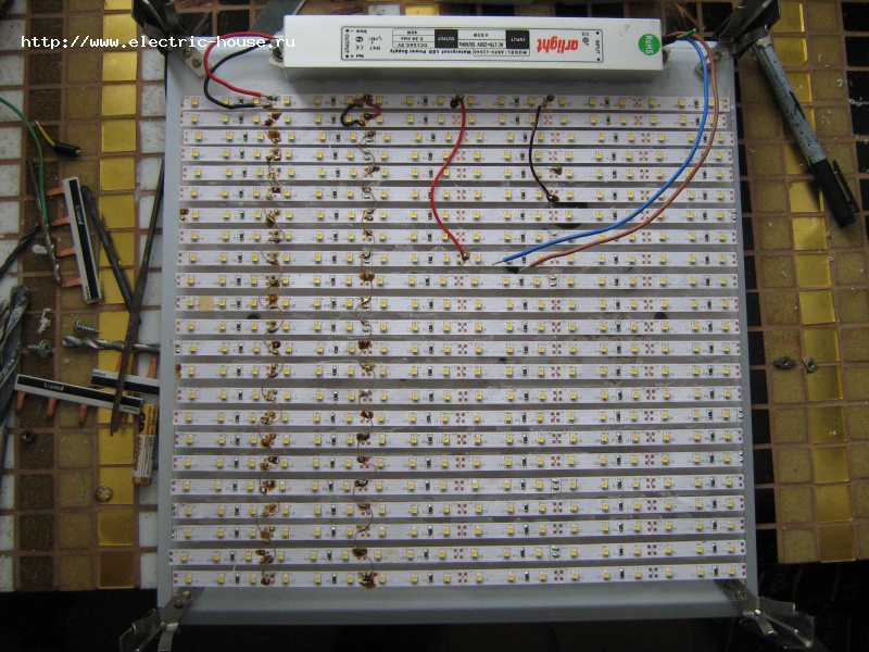 Понадобилось: 7 метров ленты -5 ватт на метр -------трансформатор 40 ватт -------оргстекло 300х300 и инструмент !