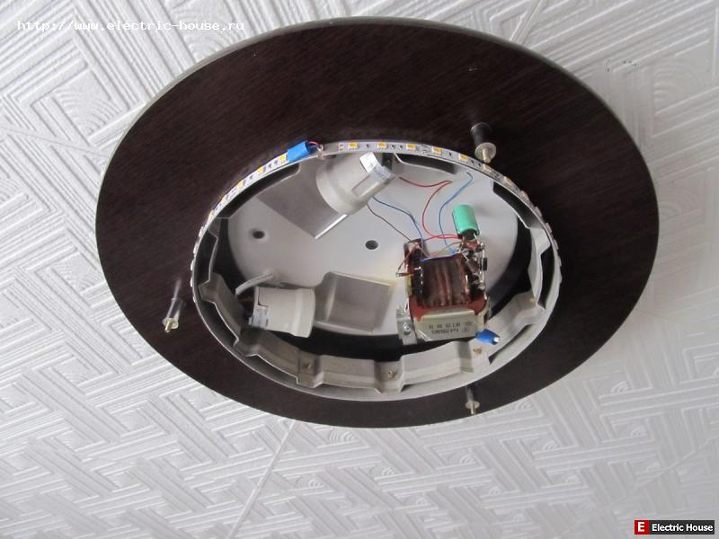 Чисто субъективно светит с лентой ярче, чем с энергосберегайками раза в полтора. Если сравнивать с ЛН - примерно сопоставимо 60 Вт. Сильно затемняет стекло, когда снимаешь - значительно светлее, но некрасиво.