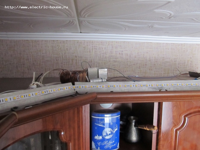 Калямба писал(а):На кухне разместил 3,5 метра ленты SMD 5050 поверху карнизной доски.