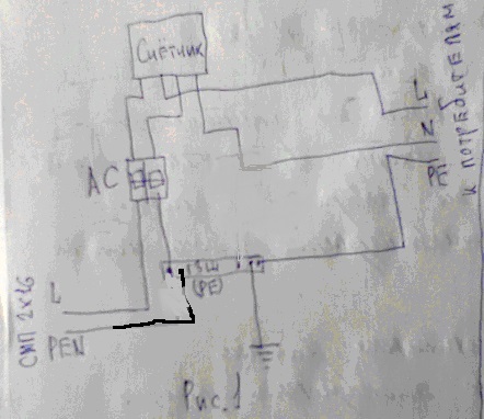 Во ВРУ следует также установить нулевую защитную шину, соединенную с указанным вводным зажимом, и изолированную от нее нулевую рабочую шину. Заземляющий проводник может быть присоединен к нулевой защитной шине ВРУ, которая в этом случае будет выполнять роль главной заземляющей шины. К вводному коммутационному аппарату и счетчику электроэнергии будут подключаться фазные проводники и нулевой рабочий проводник, начинающийся от указанного вводного зажима. В будущем к нулевой защитной шине ВРУ следует подключать нулевые защитные проводники электропроводок после их реконструкции.