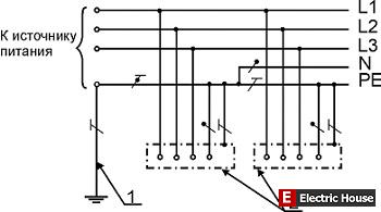 1 — заземление источника питания;