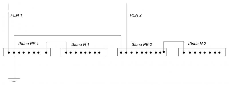 Anatoliy писал(а):Разделение PEN проводника должно быть выполнено до ввода на 4 полюсные рубильники на шине ГЗШ. + повторное заземление.