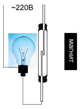 это стеклянная капсула с двумя контактами), который потянет 220В , последовательно- он чисто как выключатель будет работать?