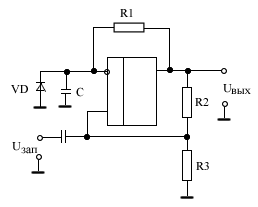 И запукающий импульс вообще-то на неинвертирующий вход дают...