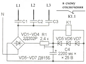 Если вместо какой-то из фаз подать ноль, и наоборот, реле встанет под ток из-за смещения нейтрали и отключит, например, основной пускатель. Все номиналы и тип приборов необходимо подбирать для конкретно используемого оборудования.