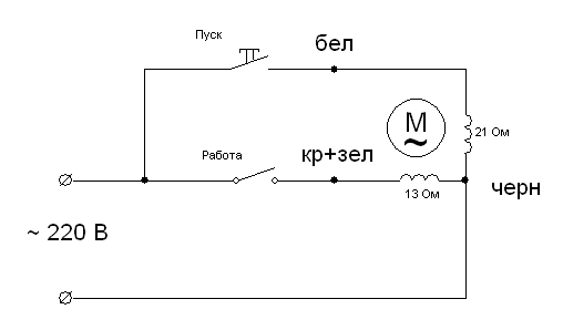 Схемы обычно типовые, одна обмотка рабочая, другая пусковая.