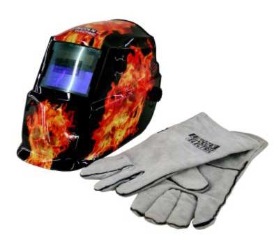 Для работы со сваркой понадобится еще и специальная экипировка. В первую очередь – это защитная маска. Выбор их огромен, но в комплекте с инвертором вы получите простейшую модель с затемненным стеклом и ручкой-держателем. Такая маска будет неудобна, поскольку ее придется держать одной рукой, - лучше сразу приобрести маску, которая надевается на голову. Самая простая стоит порядка 150-200 руб., а маска-хамелеон с мгновенным затемнением стекла при возникновении дуги – несколько тысяч рублей. Без маски работать нельзя, да и невозможно.реакционная сварочная маска и перчатки.