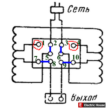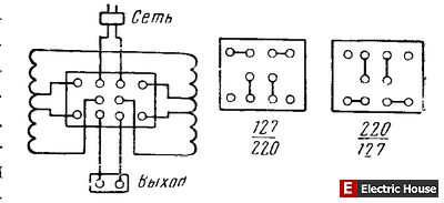 niu писал(а):на одном из форумов чел пишет - если снять крышечку, и поставить нижную перемычку не горизонтально, а диагонально, то на выходе получим 115в.
