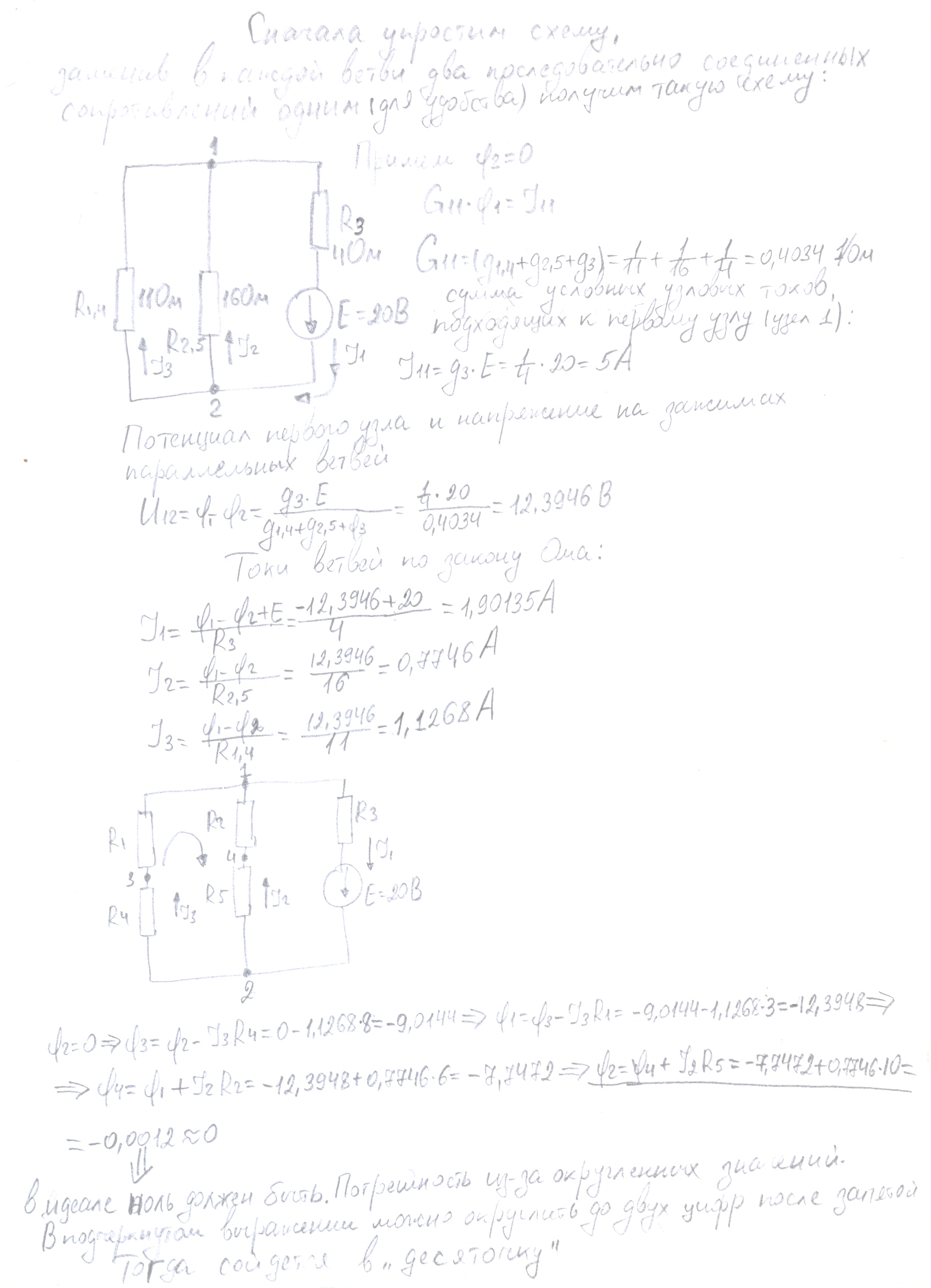 Помогите рассчитать токи по закону Ома,и скажите правильно ли я составил уравнения потенциалов? Если кто может помочь с разъяснениями например по скайпу то буду премного благодарен:) Вот логин: inanocoder Всем заранее спасибо